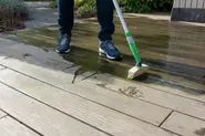 Rengjøringsbørste med håndtak for for utvendig bruk til f.eks terrasse. Har stiv bust og rengjør godt. Anbefales til Osmo Trefornyer Power-Gel for terrasse. Suppleres med Osmo teleskopskaft.